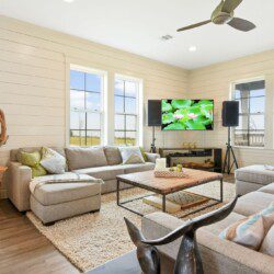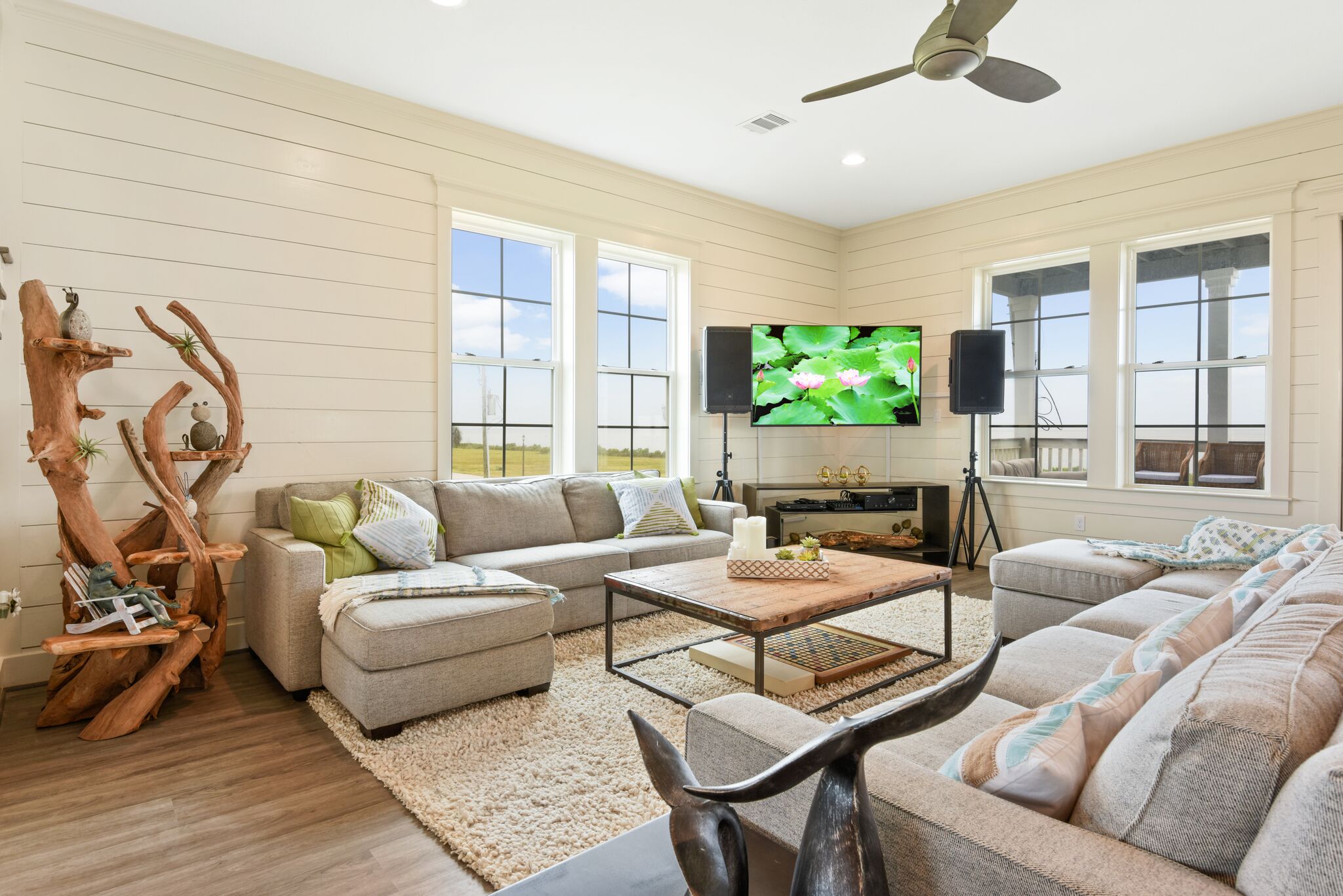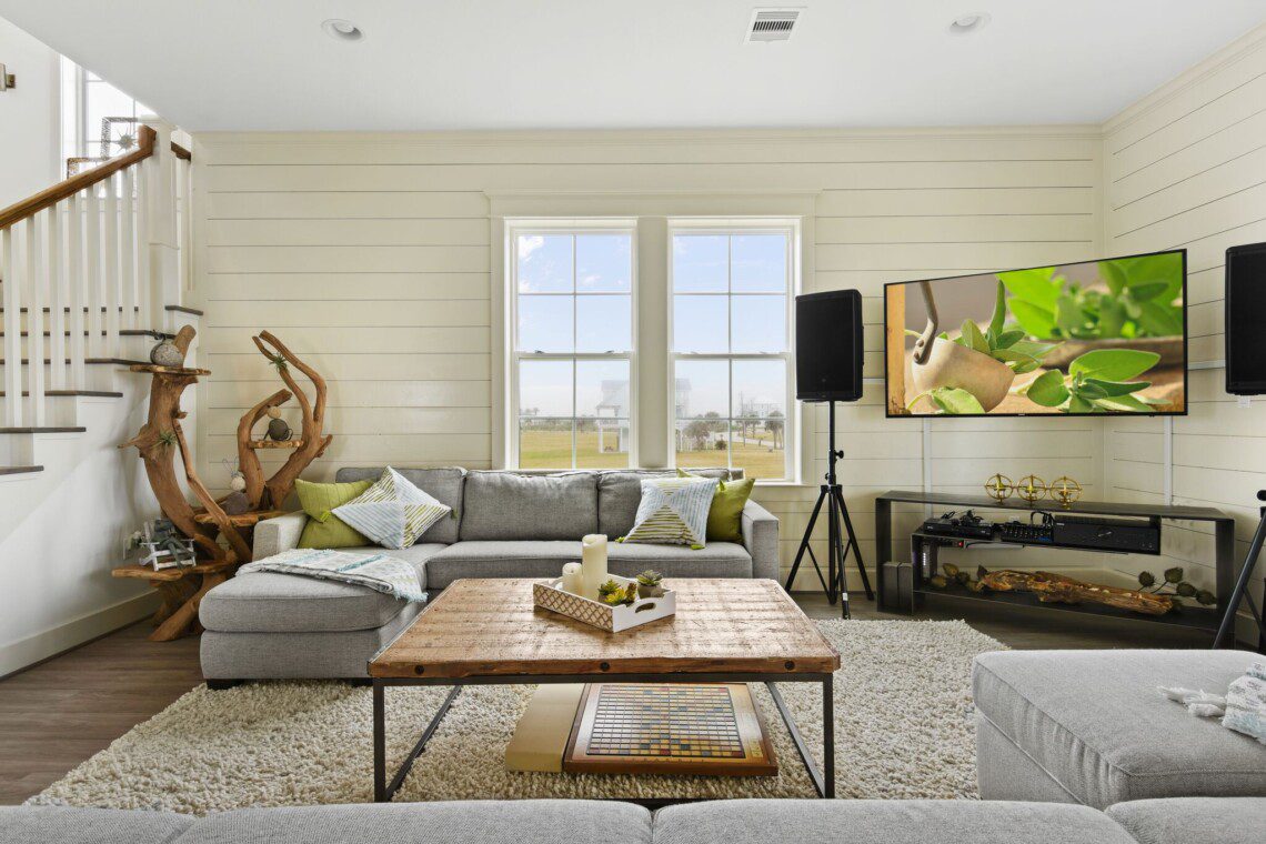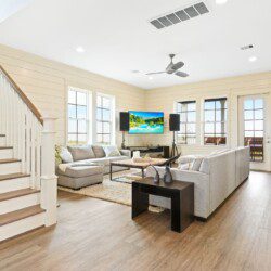 Two chaise lounge sectional sofas in the living room means everyone can find a seat for a beach-movie marathon. Or spread out to watch your favorite shows—there are five flat screen TVs in the house plus all with 140 plus channels.