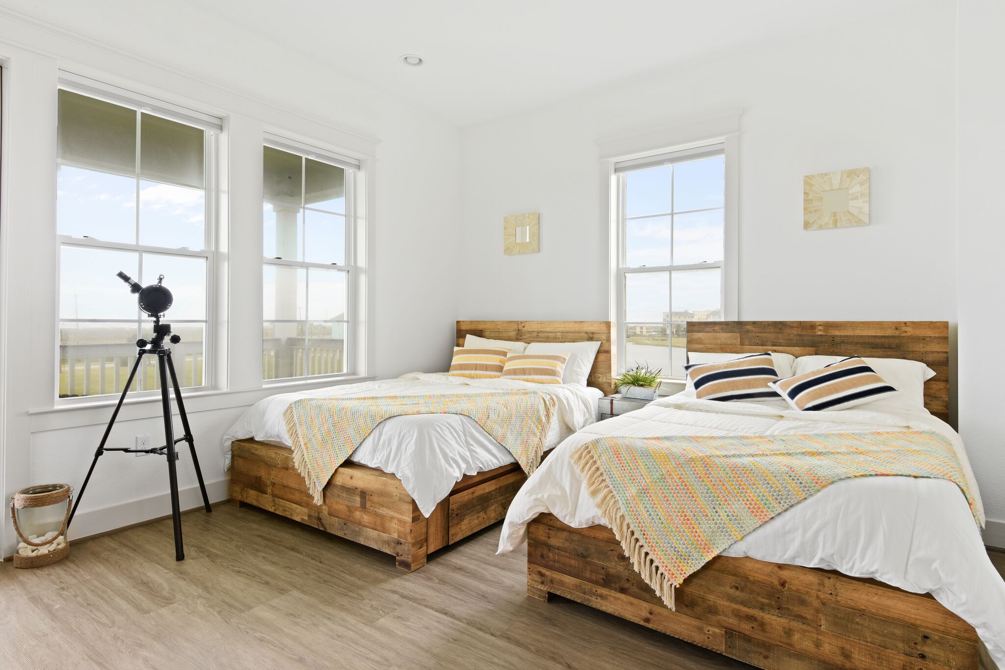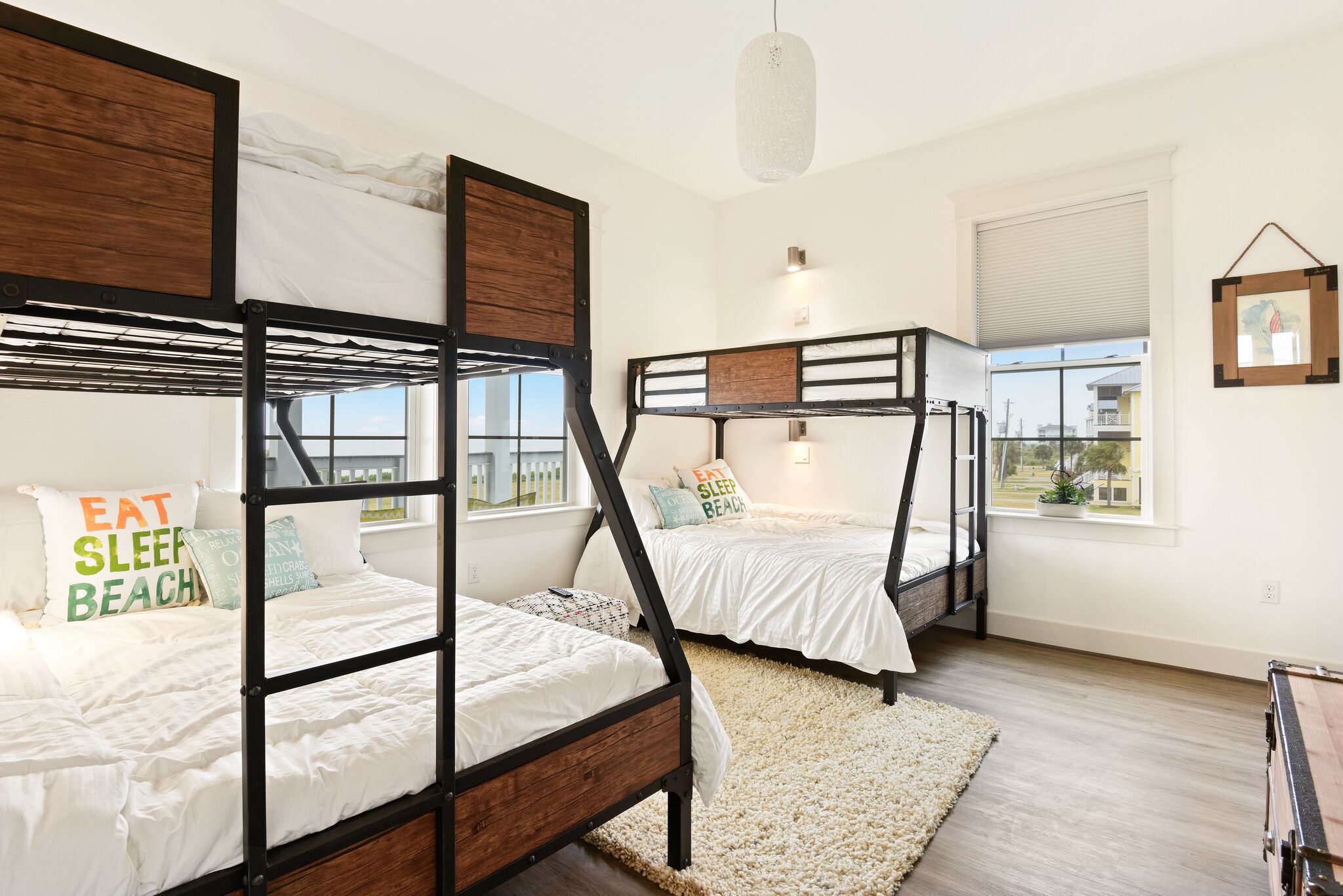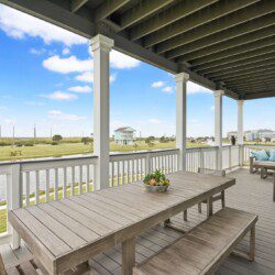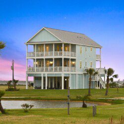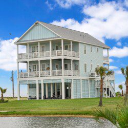 Our home sits on the tip of Galveston Island, so you’ll enjoy wide-open panoramic views of the Gulf or Bay from every side. That also means you’re a quick walk to some of the island’s best fishing spots, including the backyard pond.