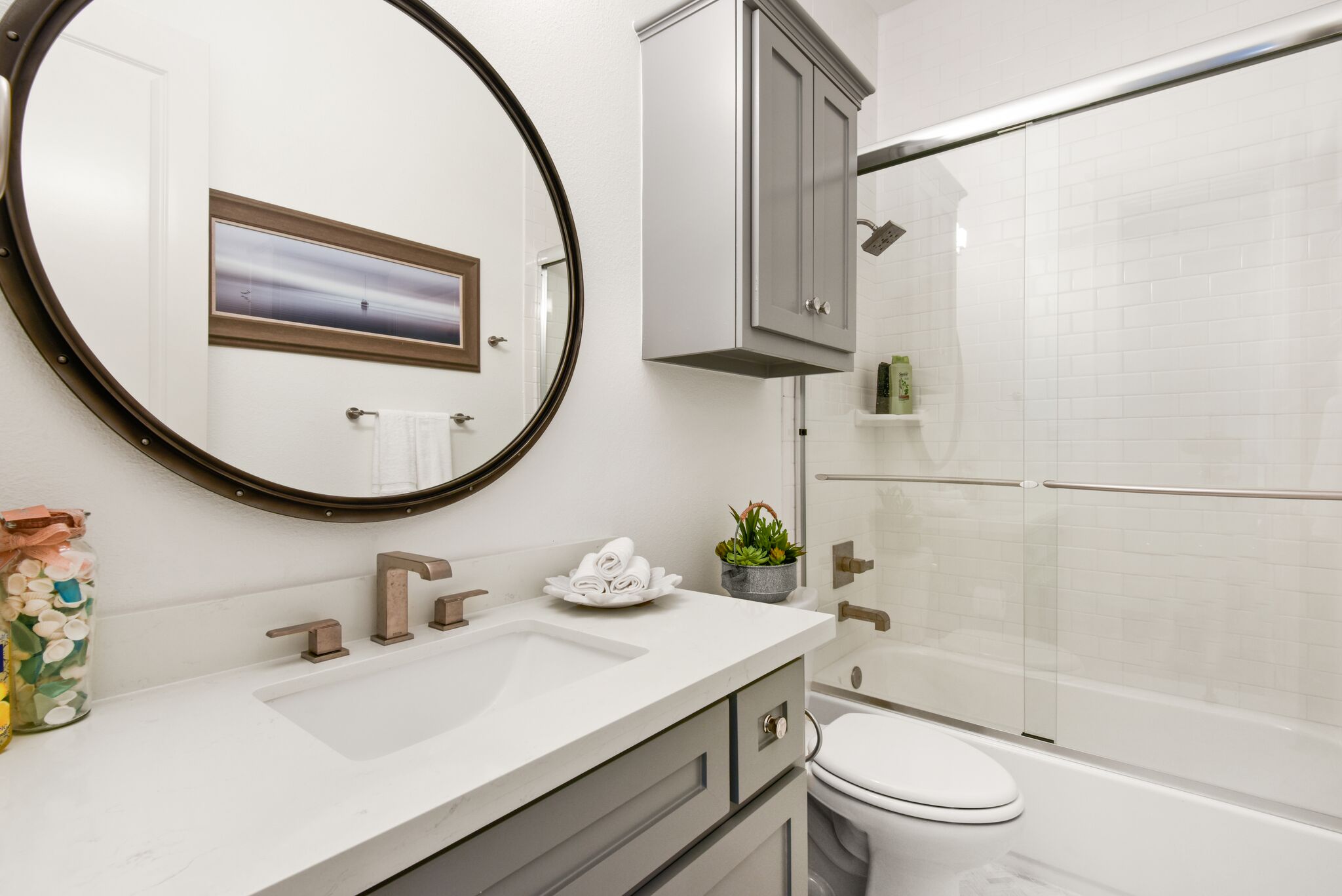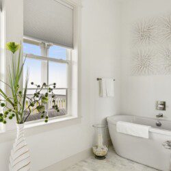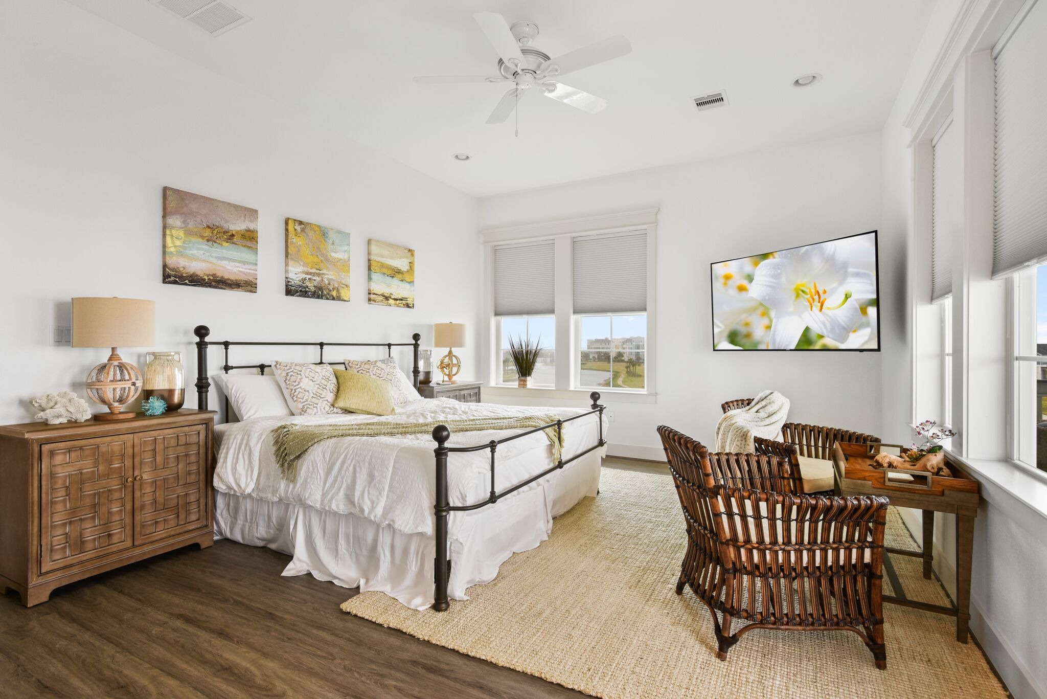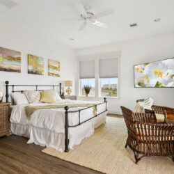 The nearby master retreat lives up to its name. Relax on the private balcony and take in a breathtaking sunset or do a little bird watching. Sink into the freestanding soaking tub in the en suite bathroom. Then retreat to the king bed.